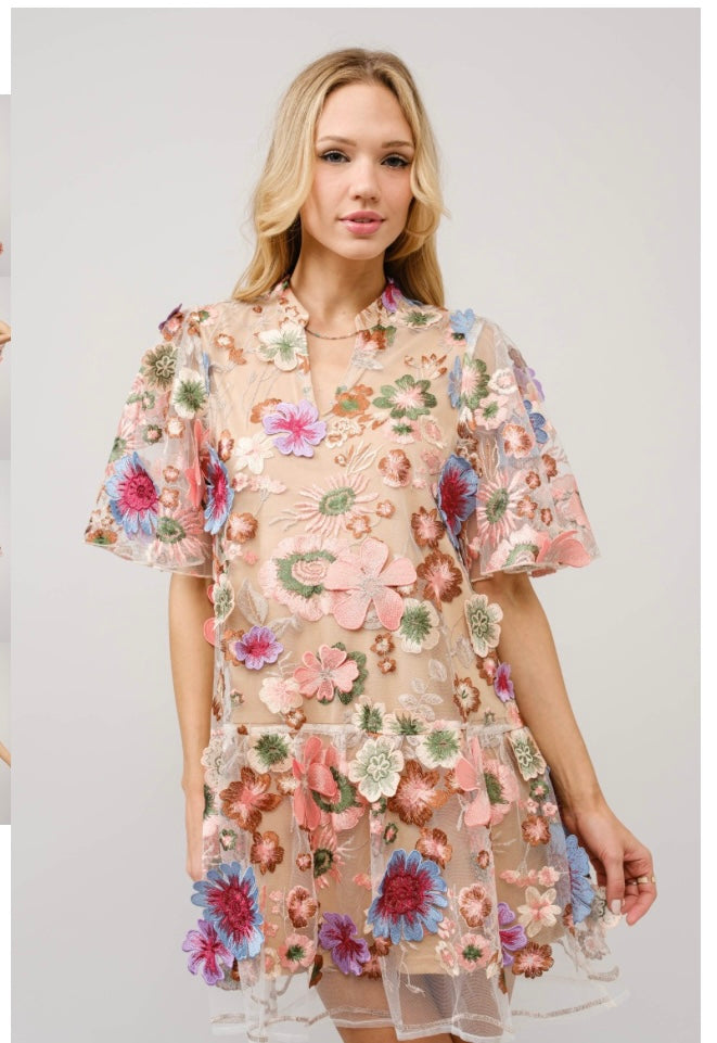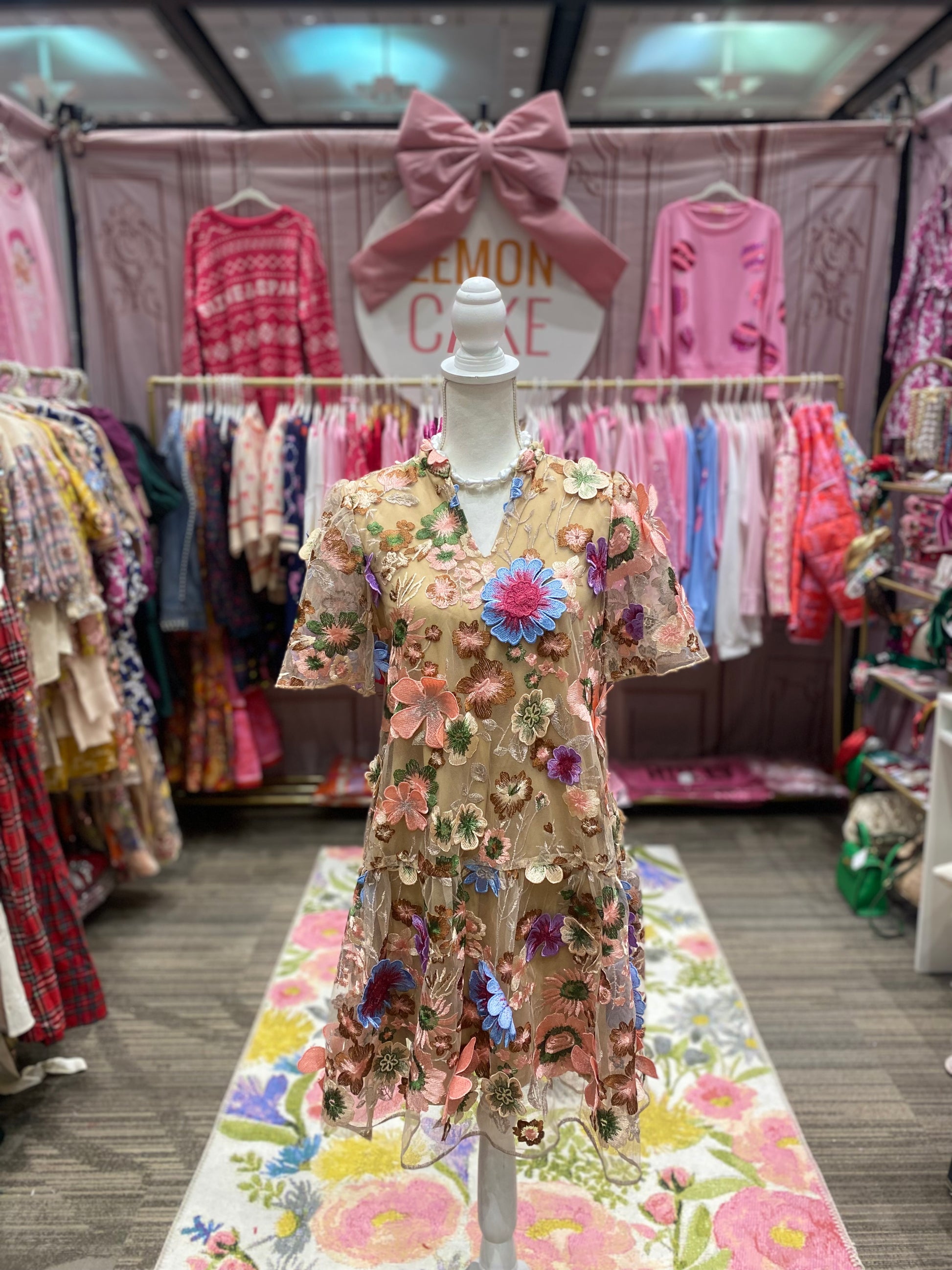 Features multi 3D flower appliques with a flattering peplum and puff sleeves, perfect for a statement look