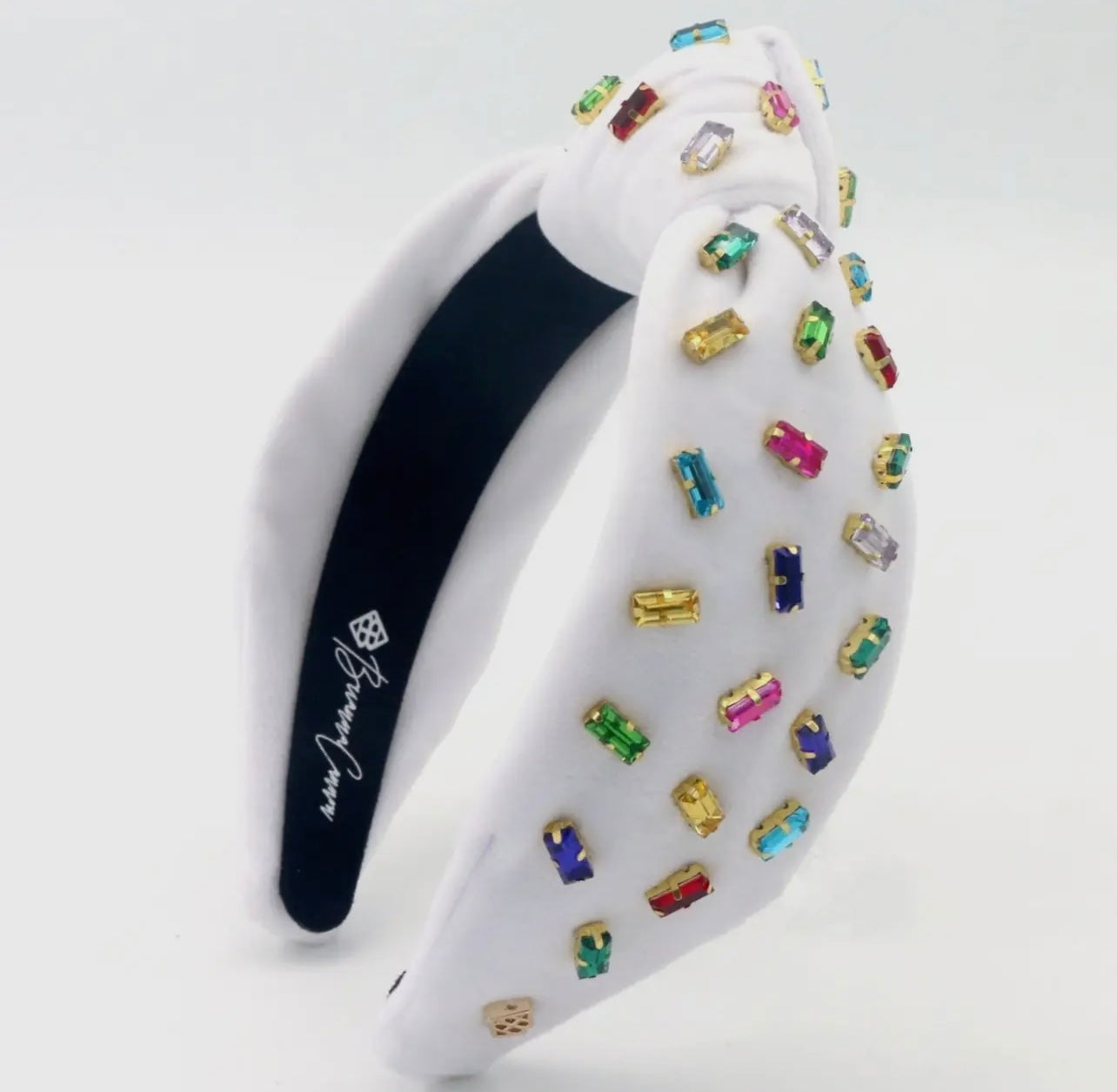 Brianna Cannon White Velvet Confetti Rainbow Crystal Headband