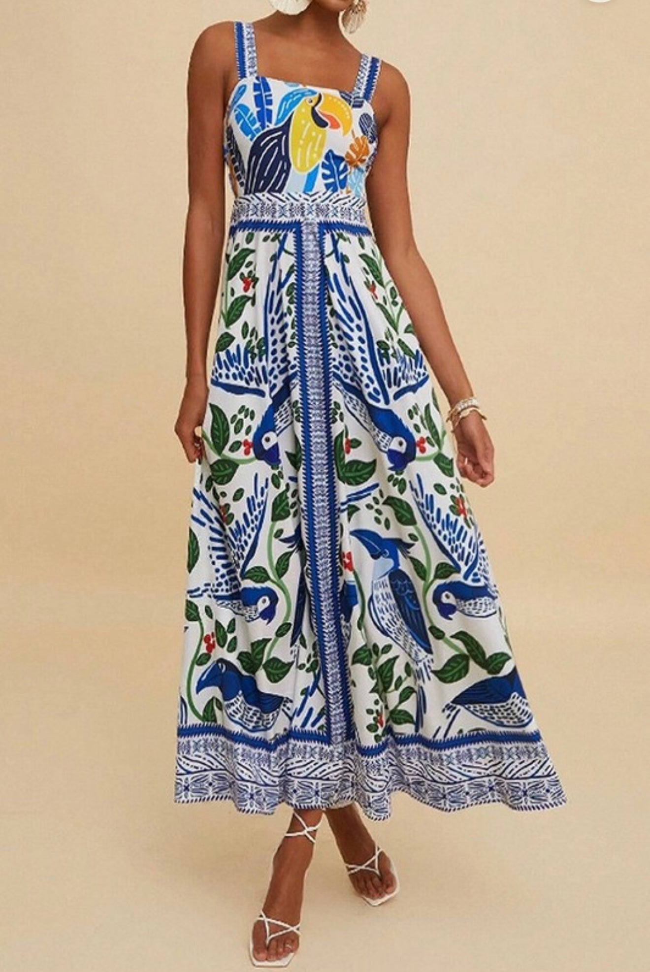 BEAUTIFUL PRINTED SLEEVELESS SQUARE NECK DRESS