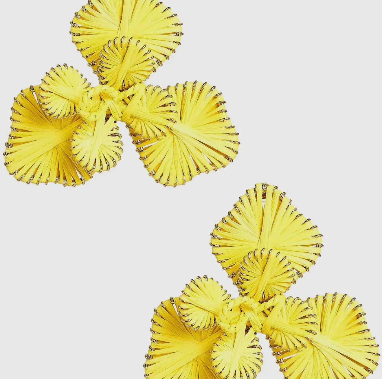 Featuring multiple raffia-wrapped flower earring, these make a great statement. Select your favorite color.