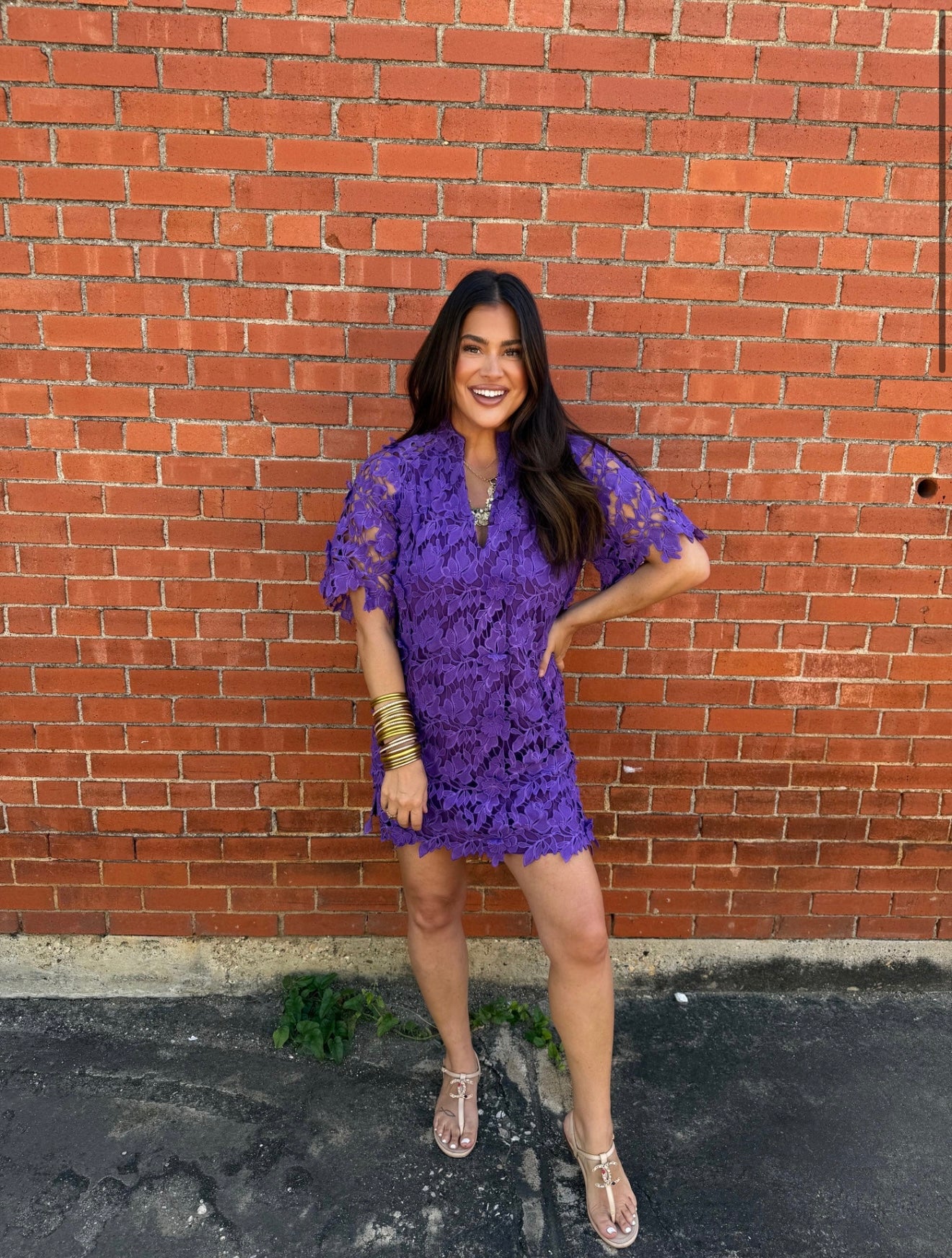 LULU SHORT SLEEVE MINI CAFTAN- PLUM