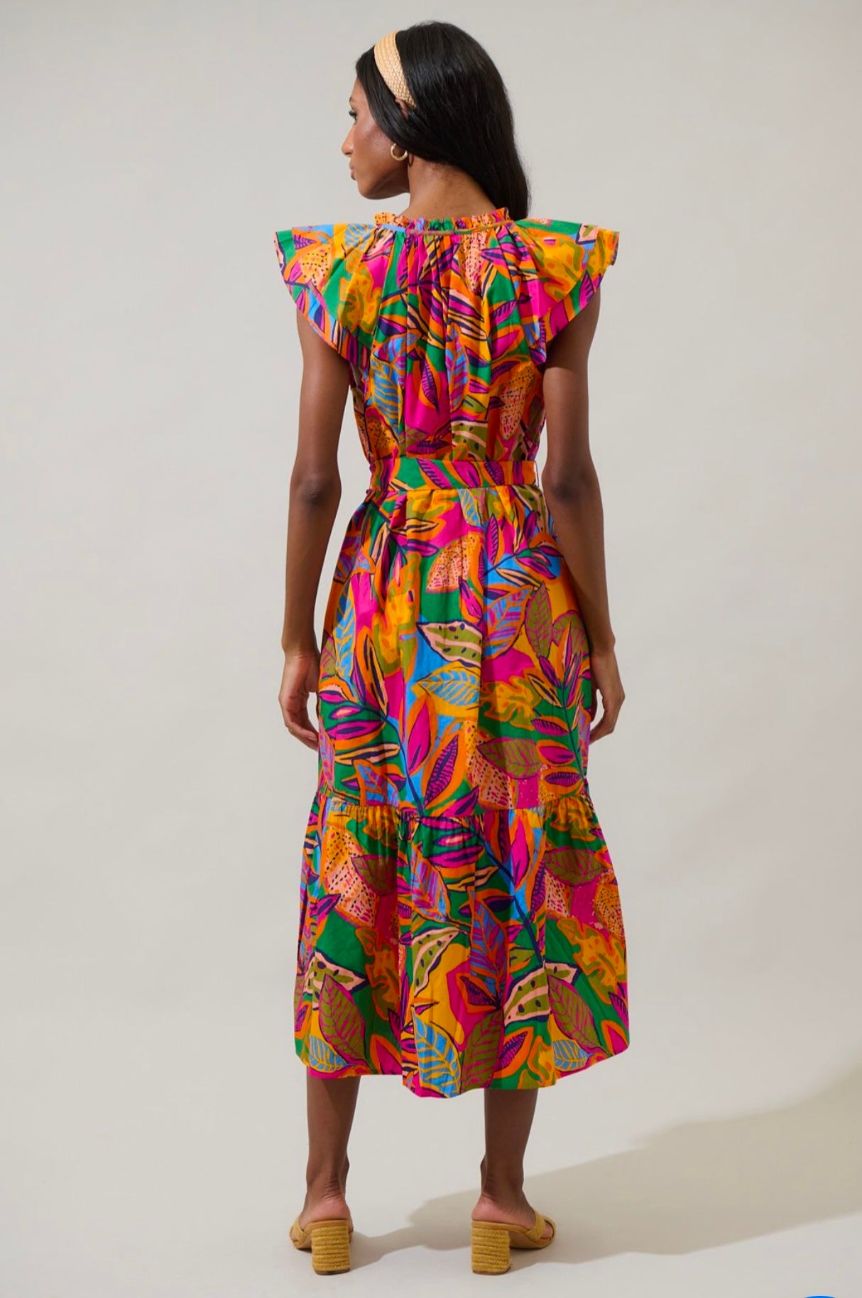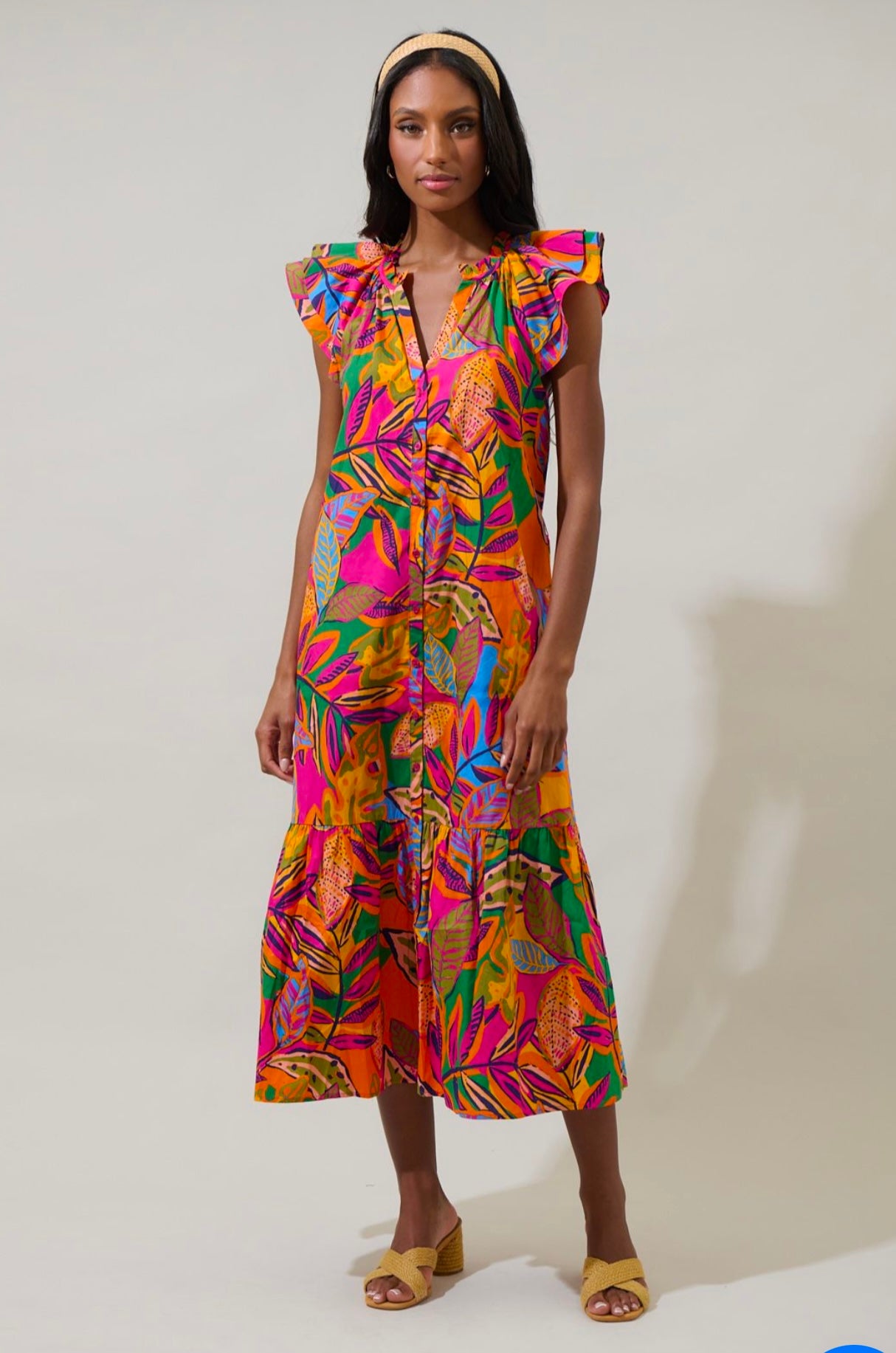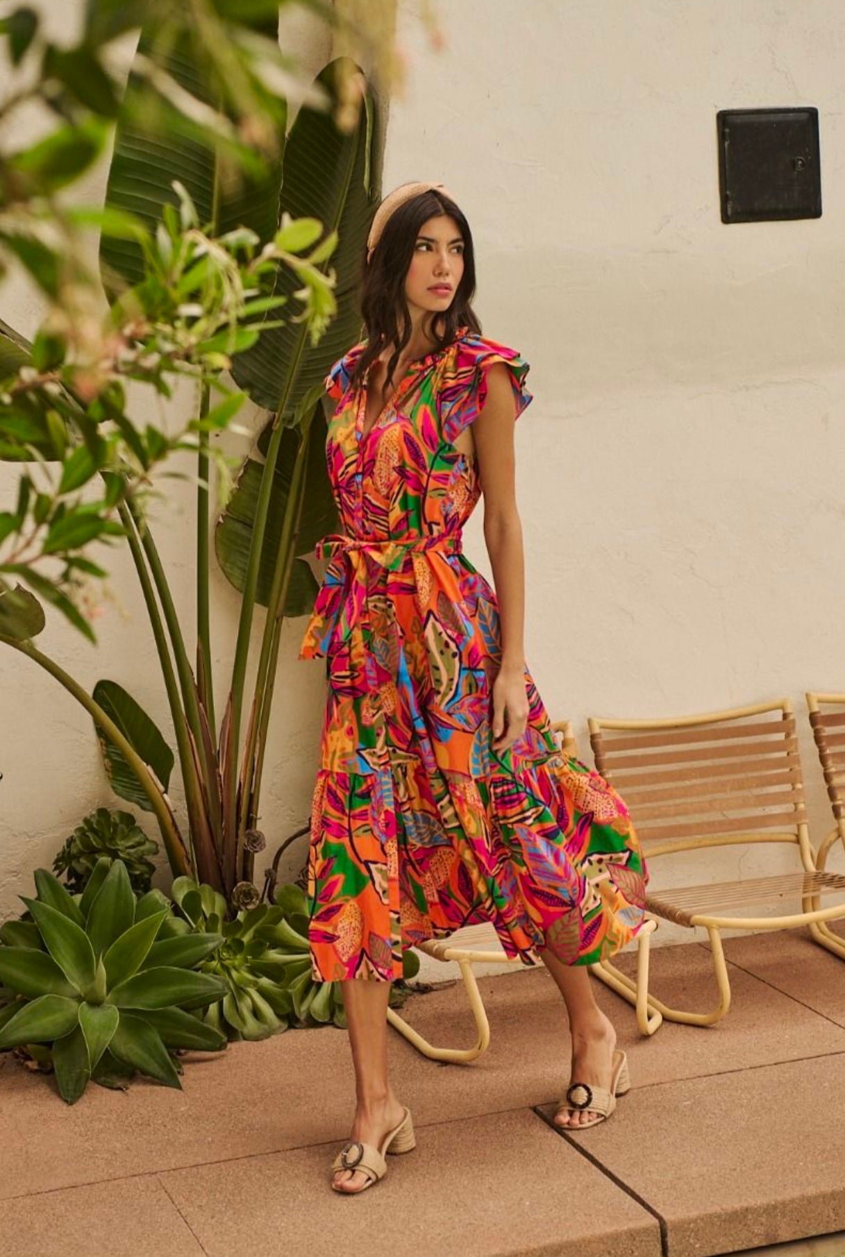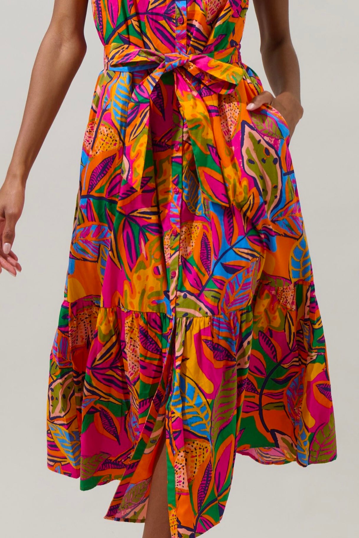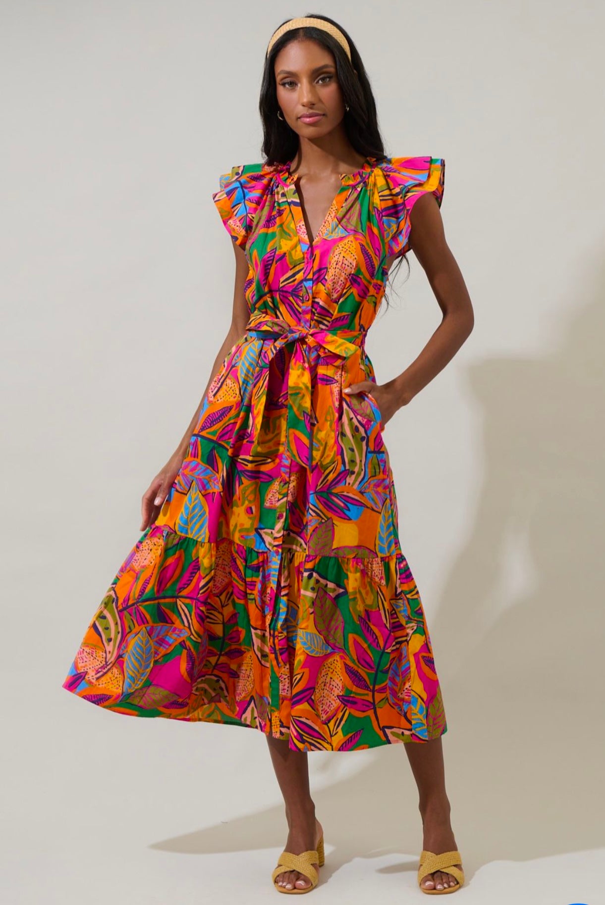 There's no need to stress out about what to wear when you've got the Milana Floral Dynamite Button Midi Dress. It features a split neckline and a flare bodice, framed by short cap sleeves. A belt wrap around the waist and secure at the back, followed by a button-down design.
