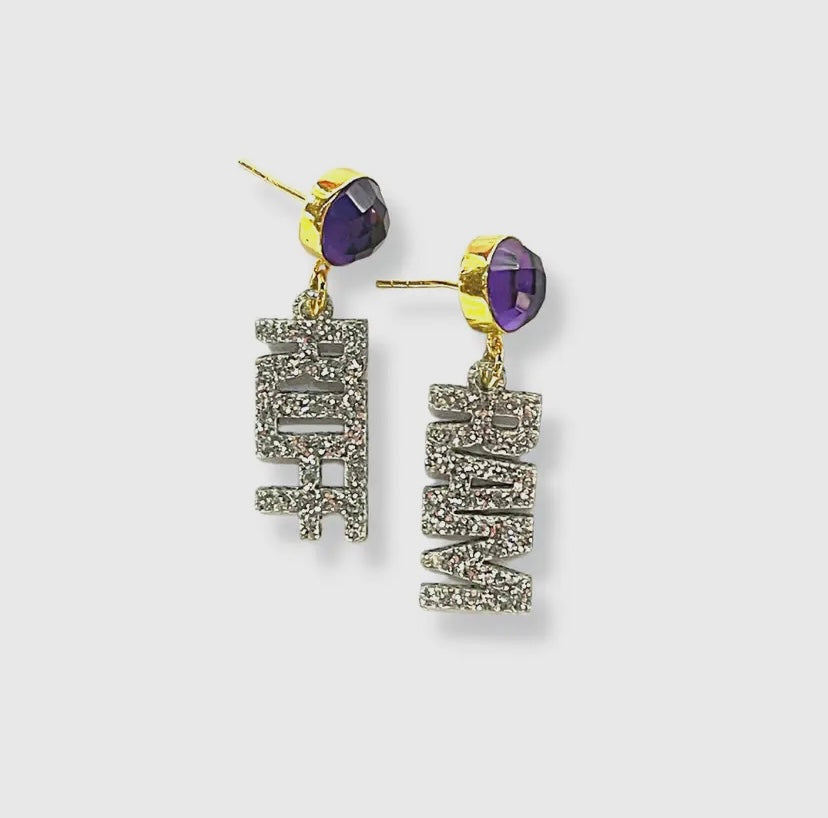 - Silver glitter acrylic with hand-faceted amethyst gemstone top