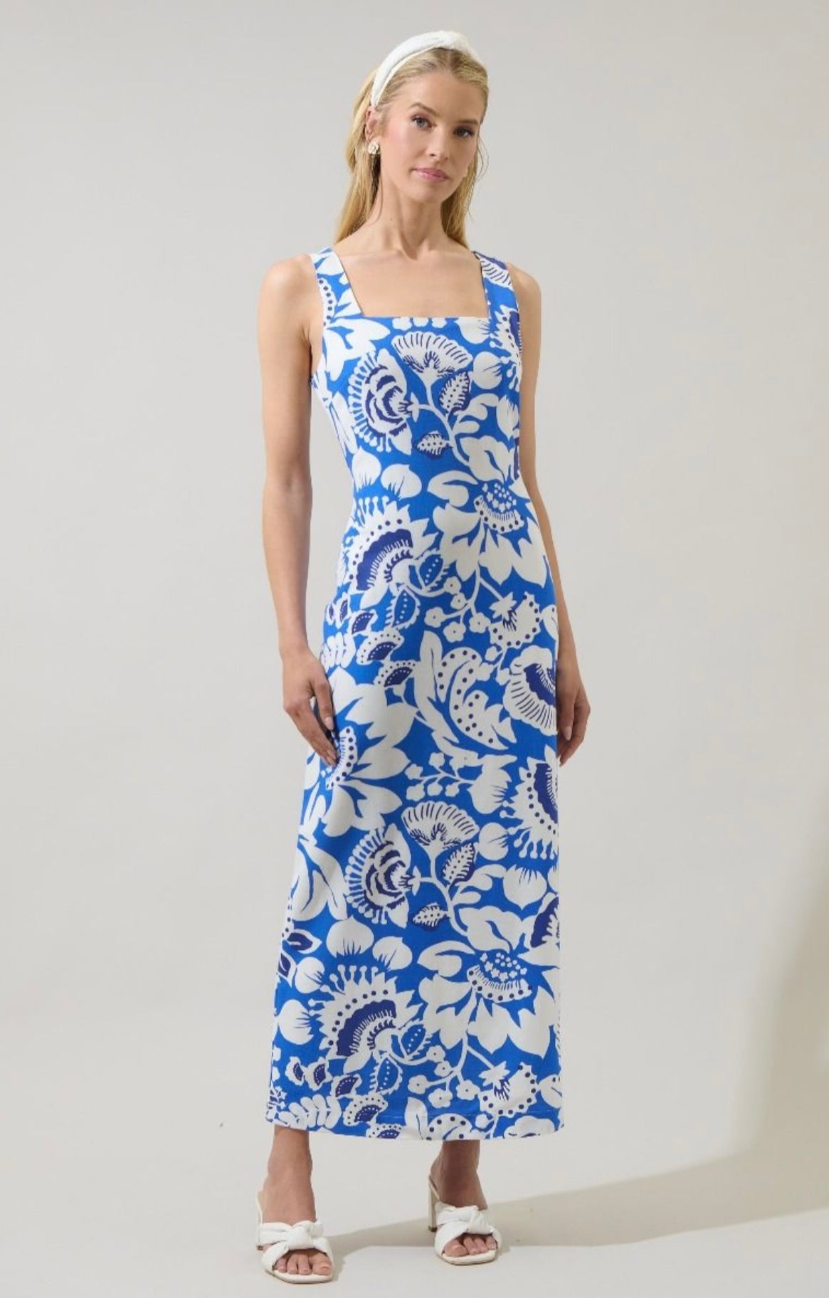 Designed with a square neckline and a sleeveless look. It has an invisible zipper in the back along with a slit. Pair it with white heels and your hair down for a cute look.