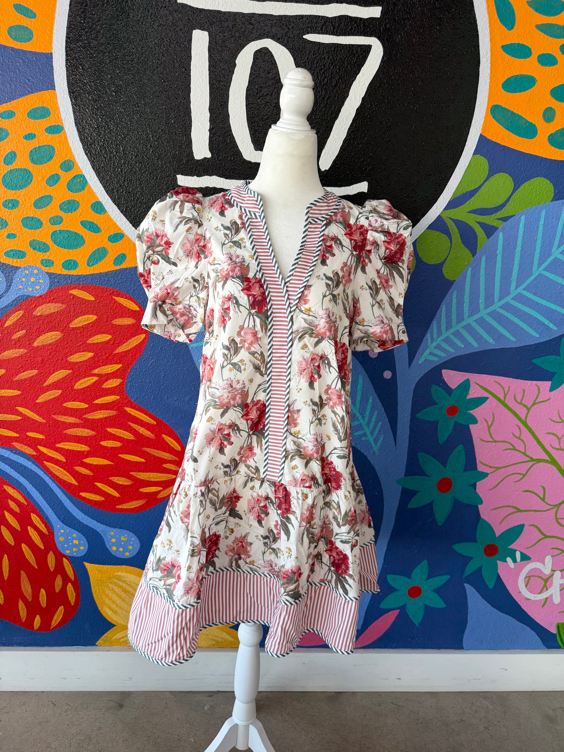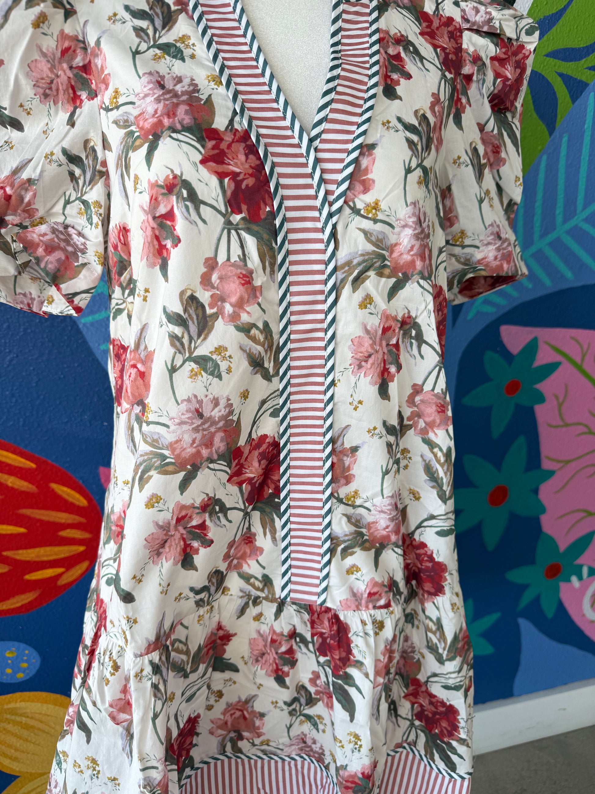 This feminine fall beauty mixes florals and stripes for a chic staple in your closet this season!