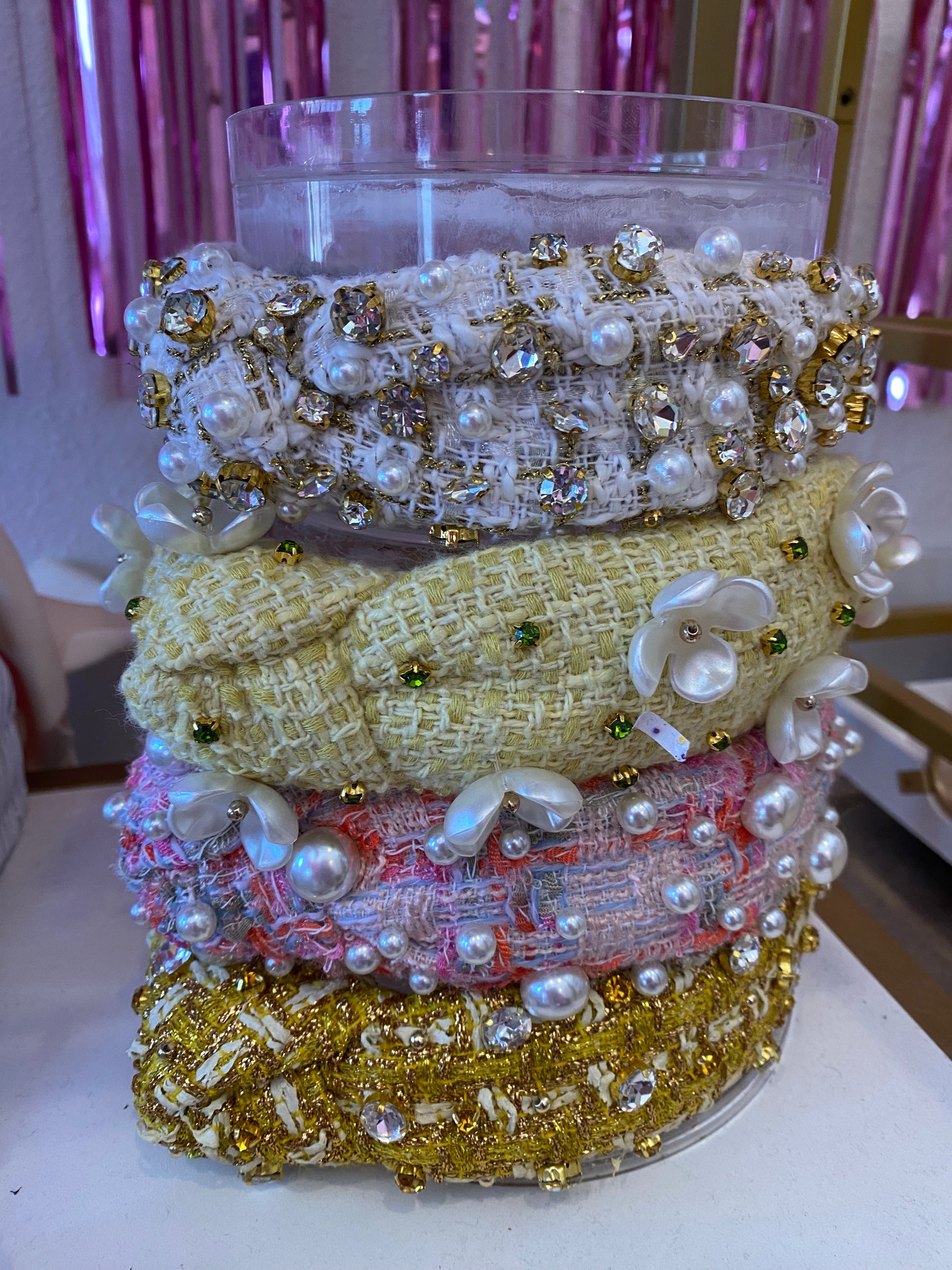 White Tweed Pearl Rhinestone Headband